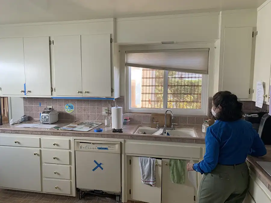 - Outdated cabinetry and finishes that made the space feel dark and visually heavy