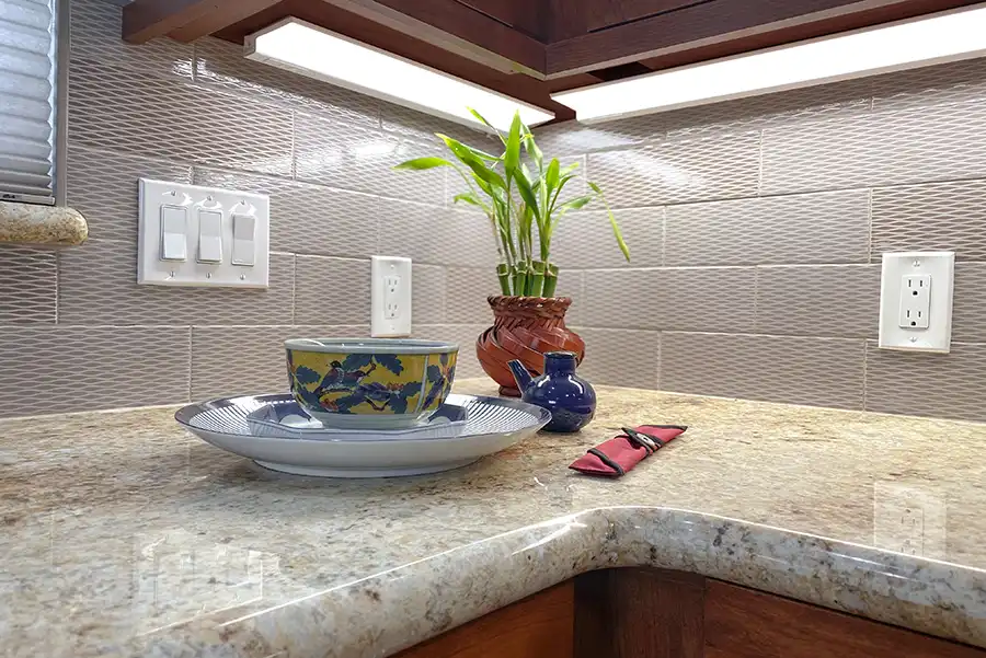 - LED under-cabinet lighting to enhance task visibility and highlight the backsplash