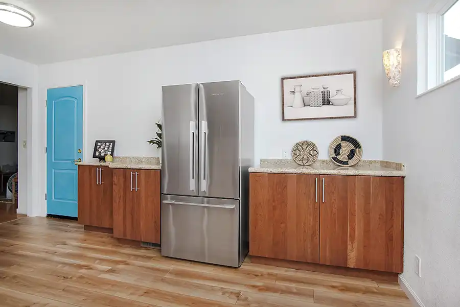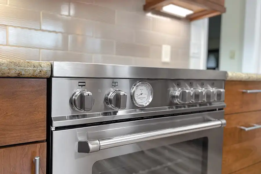 - Installation of a 30″ induction electric range, range hood, and refrigerator