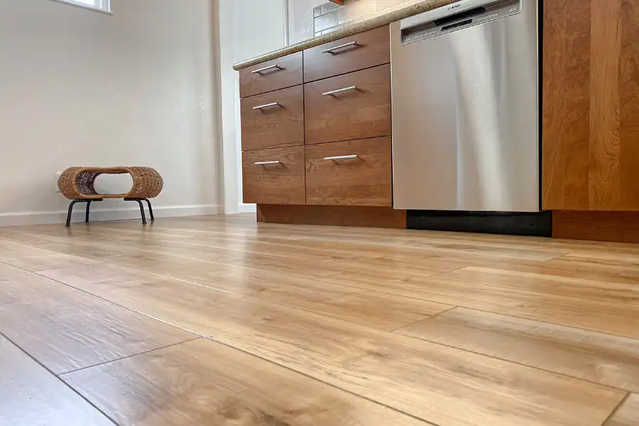 - Luxury Vinyl Plank flooring installed throughout the kitchen and adjacent mudroom, tying the spaces together visually and functionally